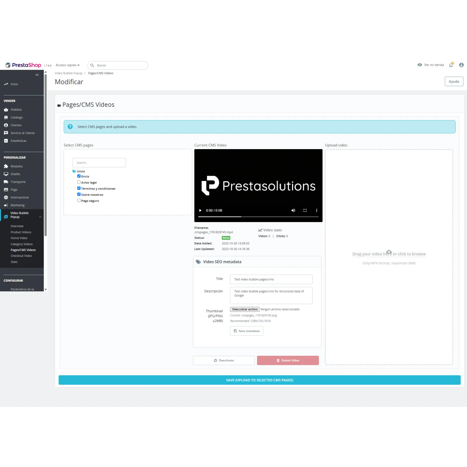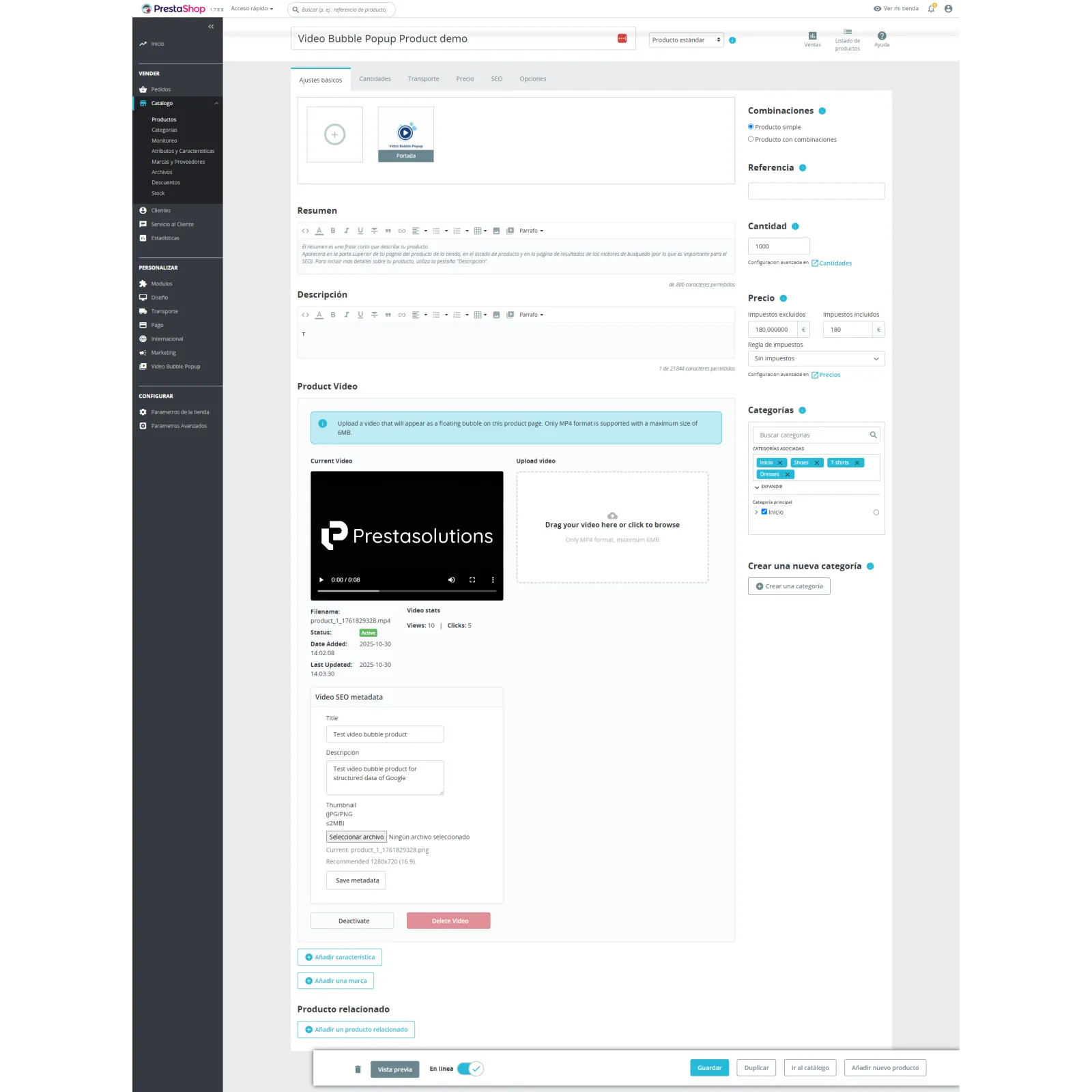 Video Bubble Popup transforma la forma en la que tus clientes descubren tus productos. Este módulo introduce un pequeño vídeo flotante, siempre visible y lleno de movimiento, que acompaña al usuario mientras navega por tu tienda. Al hacer clic, el vídeo se amplía a pantalla completa, generando un momento de impacto visual que capta toda su atención.